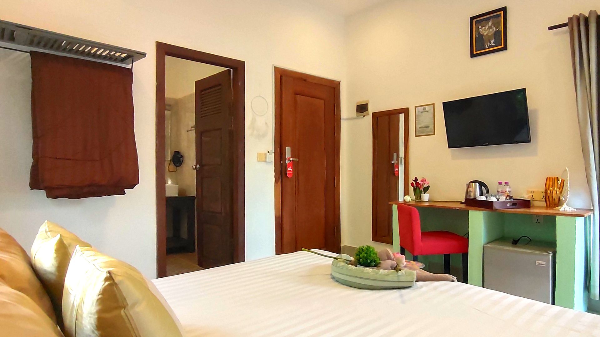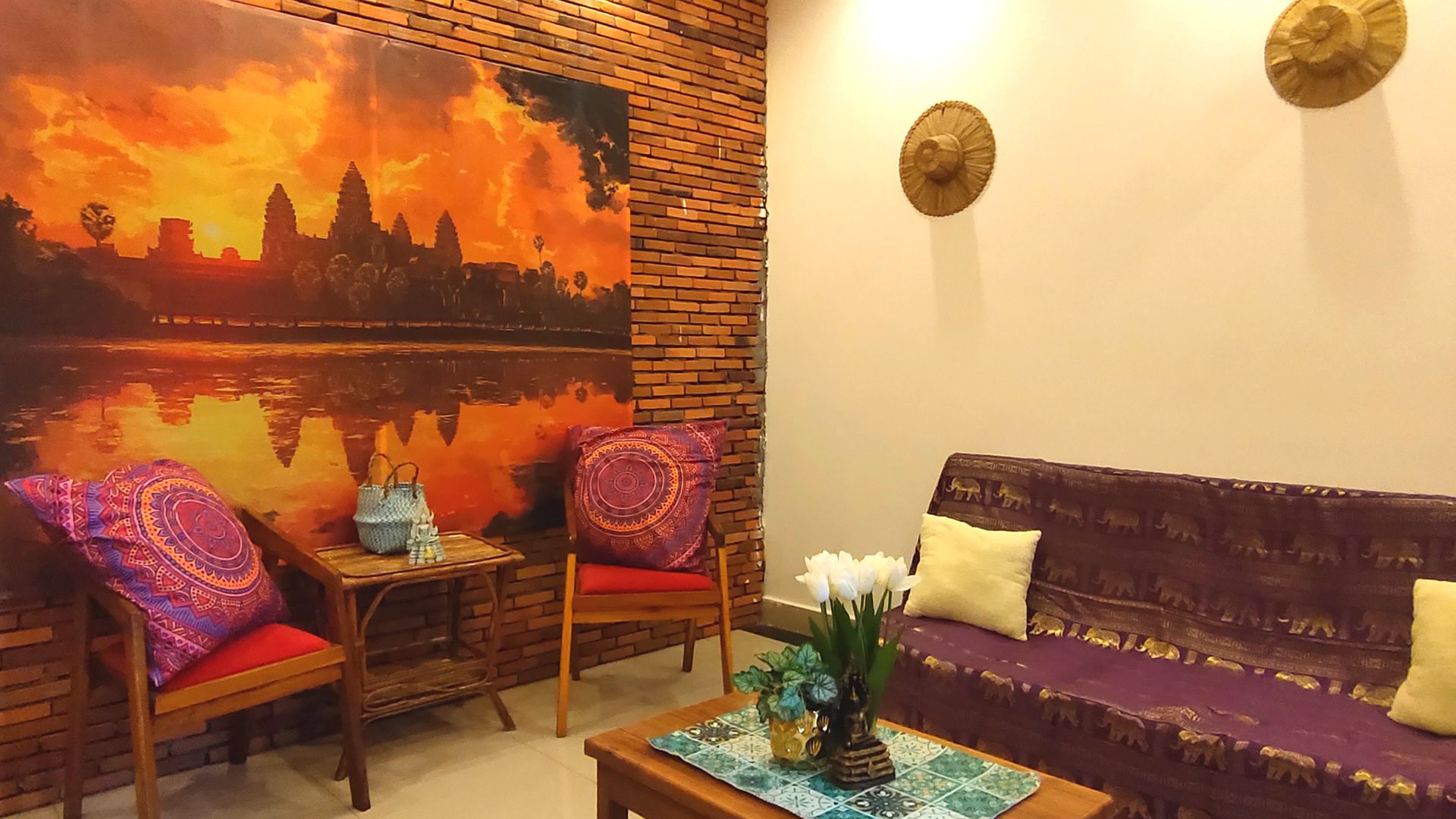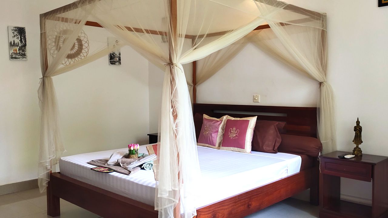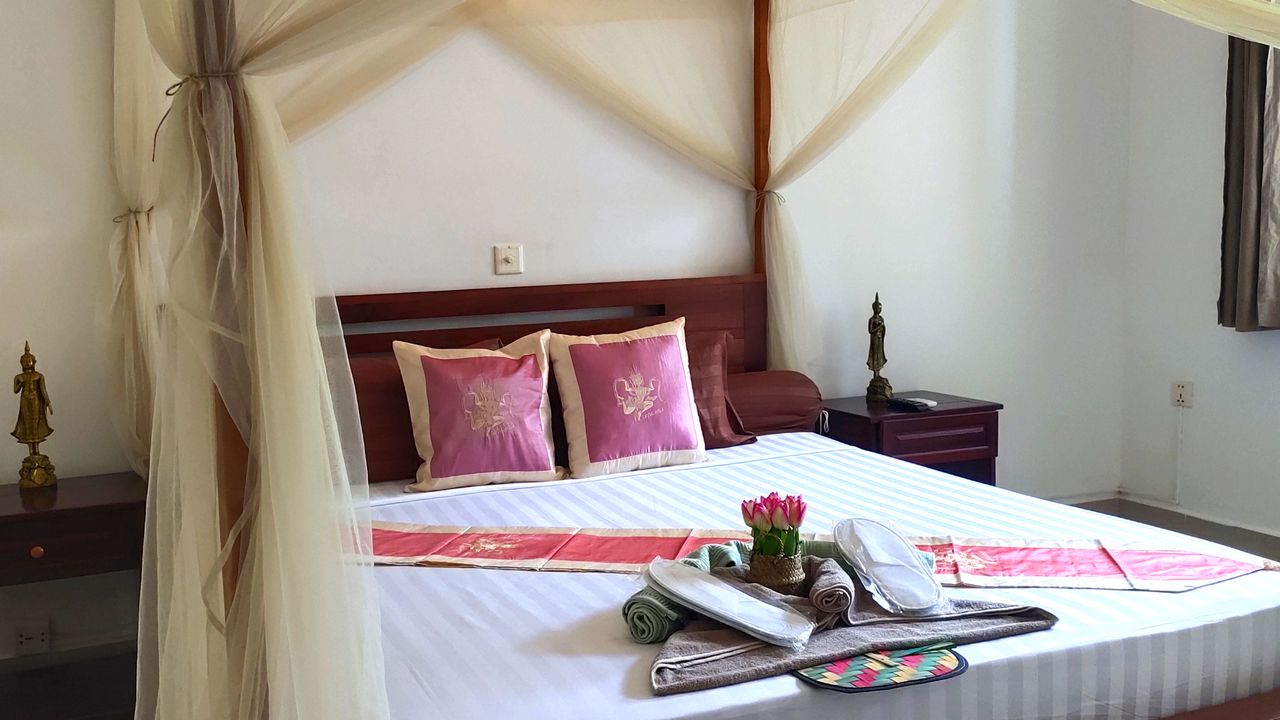 Located in Siem Reap, in front of the river, La Fontaine de Tara provides accommodations with an outdoor swimming pool, a garden, lounge bars, Sky bar. With free WiFi, our 4 stars hotel offers room service and front desk until midnight. Guests can enjoy Snacks and Drinks at the lounge bars and sky bar. At the hotel every room is equipped with air conditioning, private bathroom with a shower or a bathtub (in familial bedroom), free toiletries and a hairdryer. All rooms have an electric tea pot, a shared balcony and pool views. At La Fontaine de Tara, rooms are equipped with bed linen and towels.
